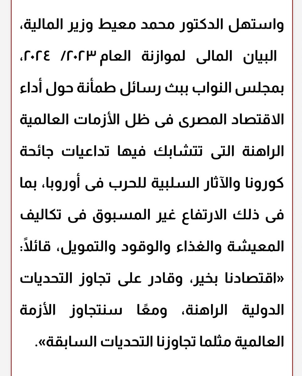 زي اقتصاد مصر زي أزمة كورونا والحرب الروسية الأوكرانية.