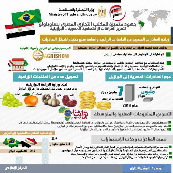 والهند أصبحت سوقًا يتم التعويل عليها مستقبلًا في تصدير القمح باعتبارها ثاني منتج وكمان البرازيل ثاني أكبر مصدر للحوم عالميًا، وبتحتل مرتبة متقدمة في تصدير الذرة، وفول الصويا .مصلحة مصر في الانضمام لأي تكتلات اقتصادية من اجل تحسين شروط التجارة الخارجية لصالحها،