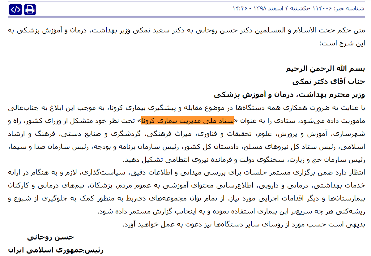 نکته : لازمه بدانیدآن زمان حسن روحانی (که رییس شورای عالی امنیت ملی بود -اساساً رییس جمهور، همزمان رییس شورای عالی امنیت ملی نیز هست) ⬇️