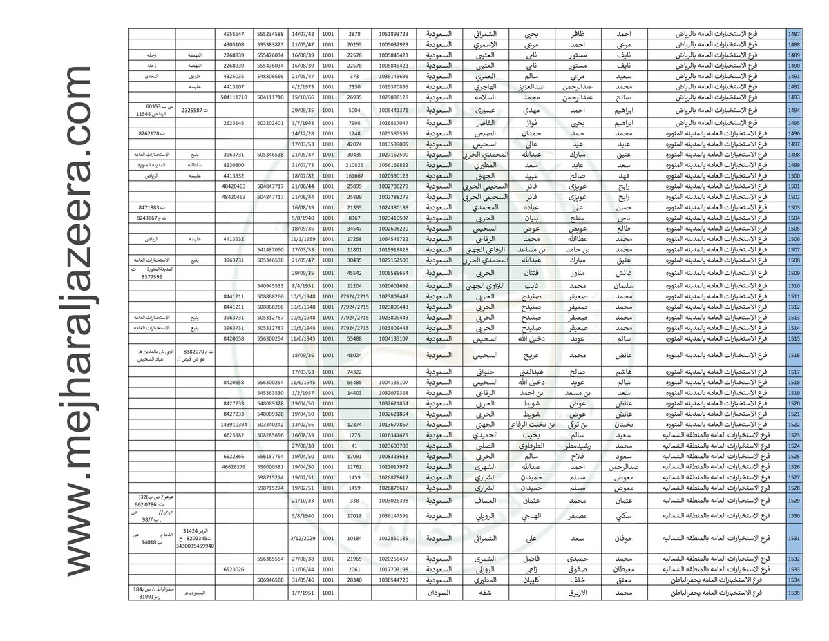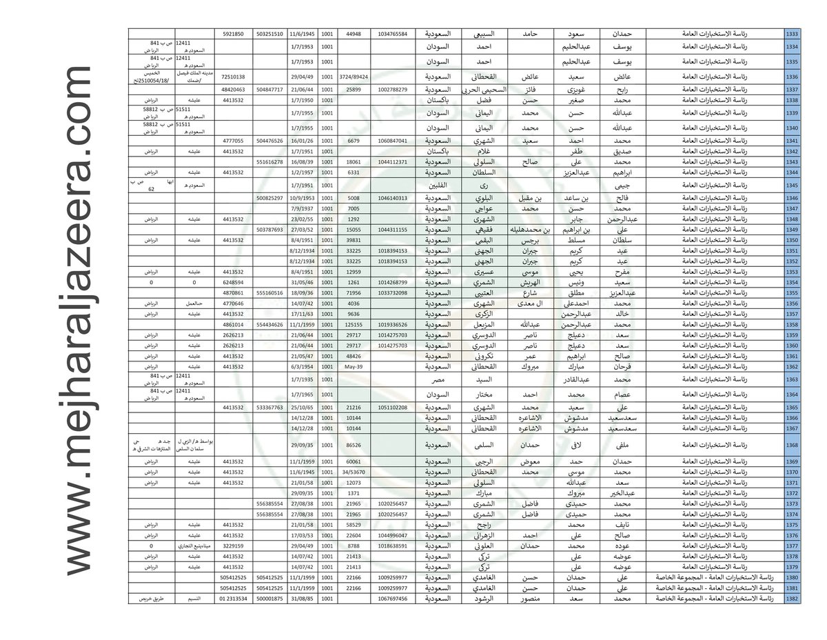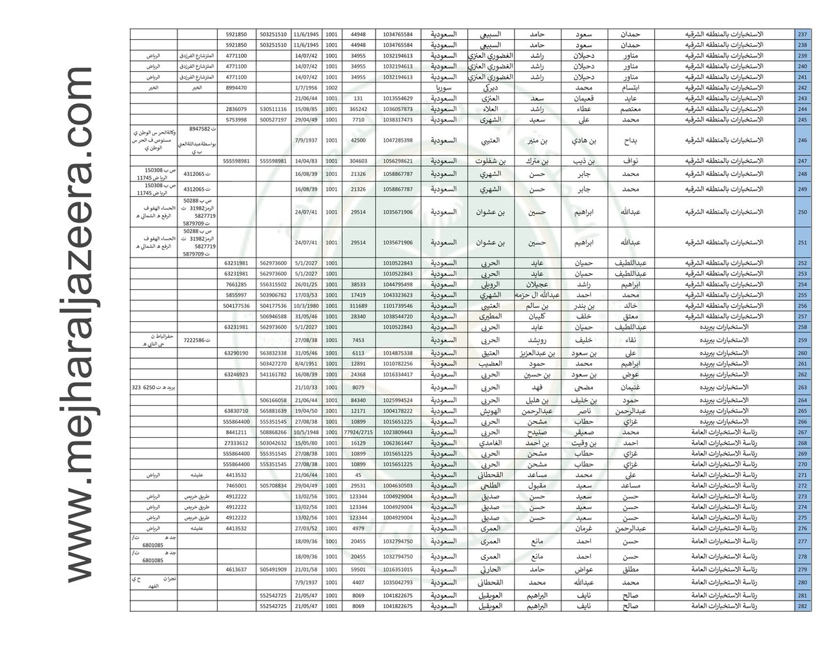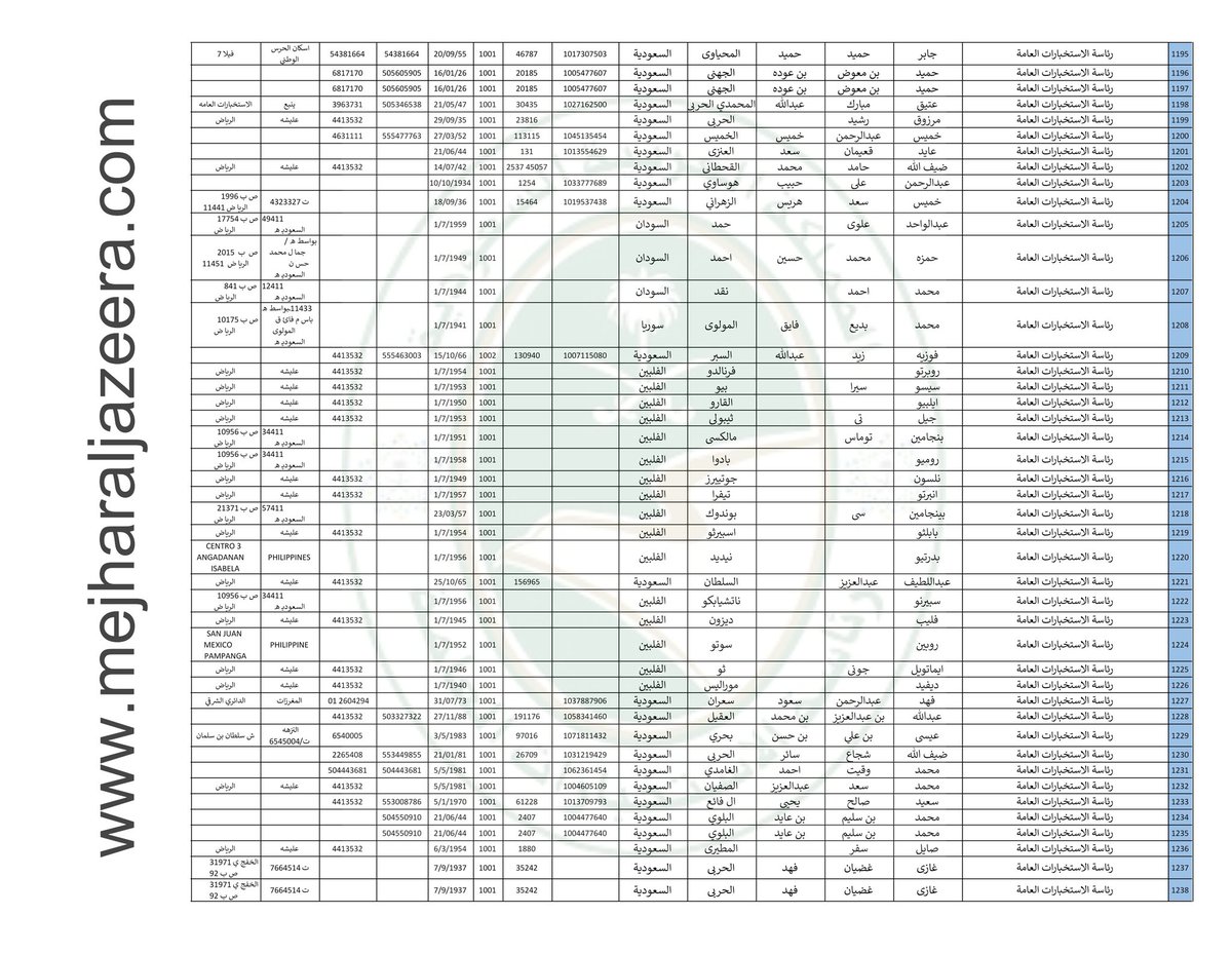 ننشر لكم قوائم بأسماء 2,242 عنصر من عناصر #الاستخبارات_السعودية بالتفصيل الكاملة عنهم وأماكن عملهم بمناطق المملكة؛