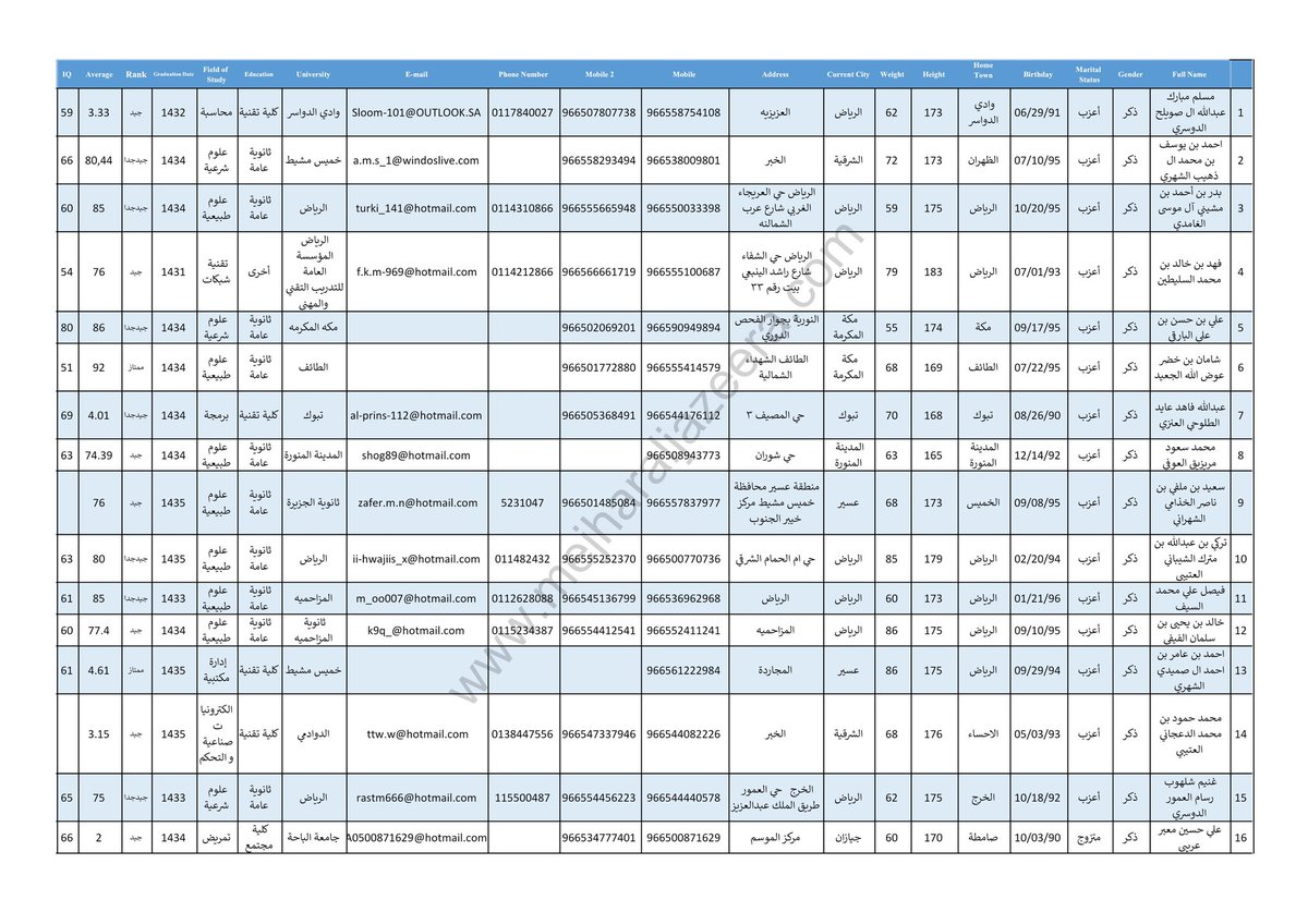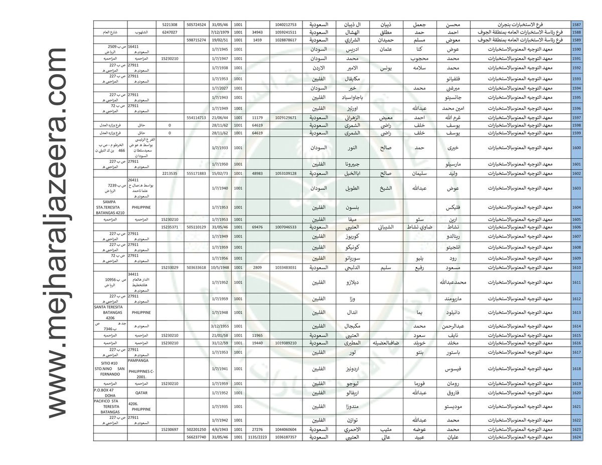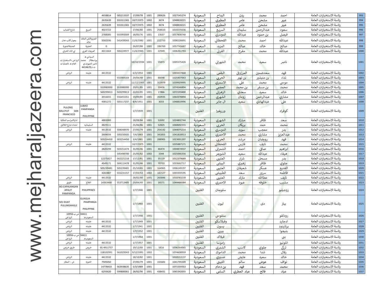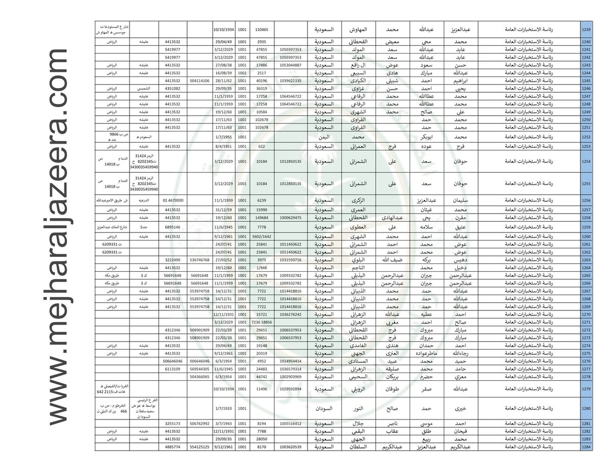 ننشر لكم قوائم بأسماء 2,242 عنصر من عناصر #الاستخبارات_السعودية بالتفصيل الكاملة عنهم وأماكن عملهم بمناطق المملكة؛