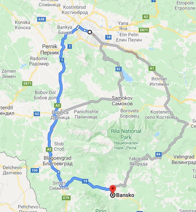 أو عن طريق الباص ويكلف حوالي 8 يورو من صوفيا ويمكن الحجز من خلال أو بالقطار ويكلف حوالي 15 يورو ويمكن الحجز من خلالcheckmybus.com