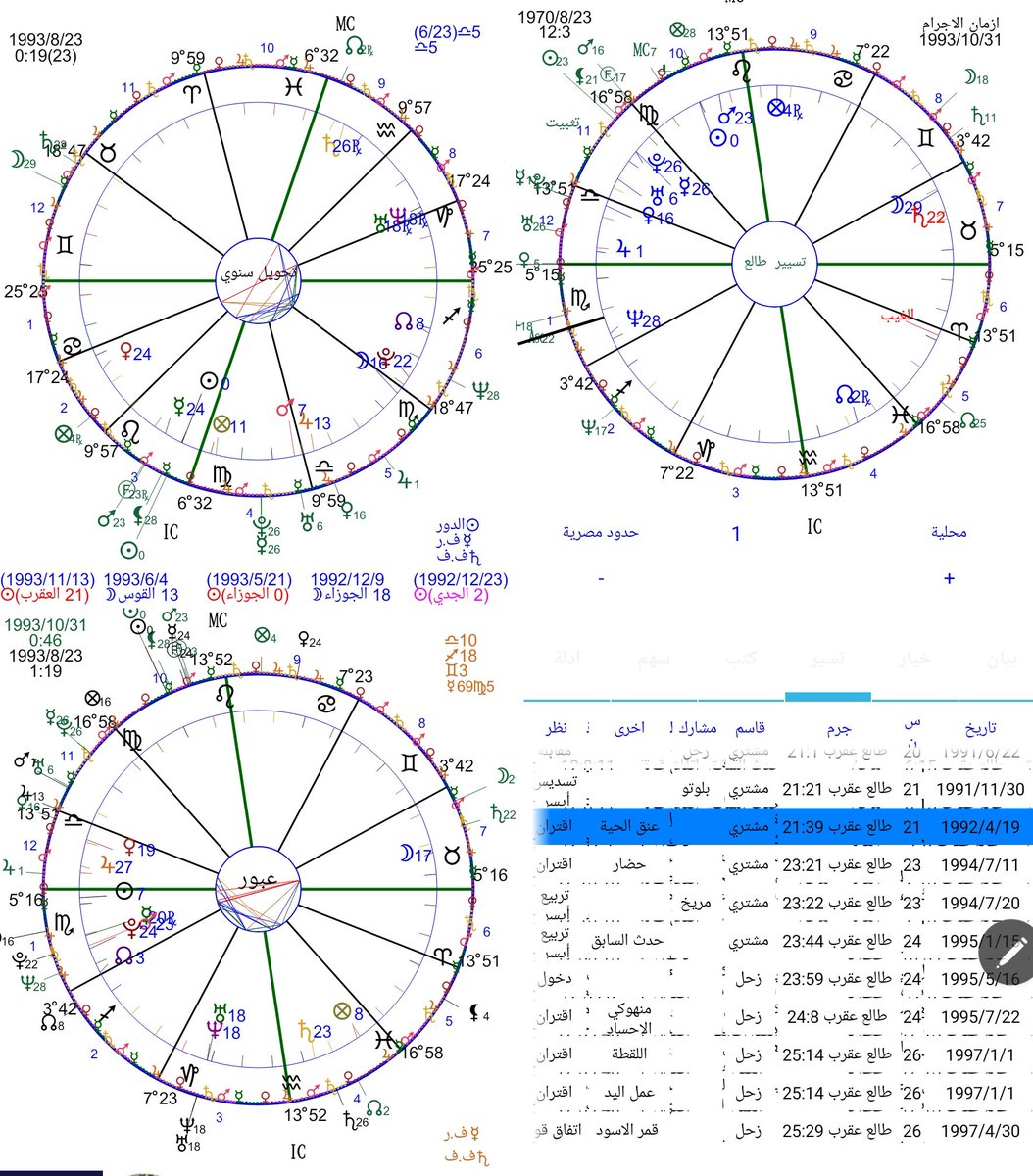 لو راجعنا تسيير درجة طالعه في وقت وفاته نرى ان درجة قسمه الطالع وصلت للدرجة ٢٢ عقرب والقاسم المشتري والمشارك بلوتو وهذه الدرجة مقابل درجة زحل بمولده لانه في الدرجة ٢٢ ثور .