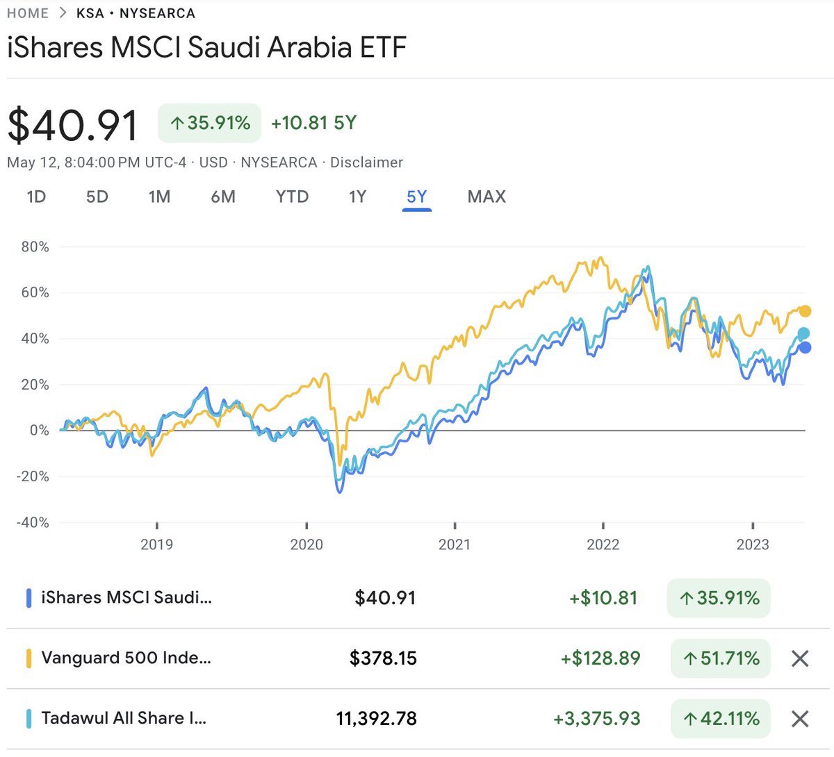لكنه أقل من صندوق $VOO الذي يتبع مؤشر S&P500 الذي حقق نمو ٥١٪ في نفس الفترة