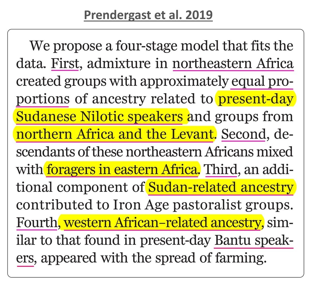 اعملوا تاغ للكمتاوي 🤡😂 ماذا تقول دراسة Prendergast عن خلائط شمـال شـرق أفريقيا ؟ تقول أنها تشكلت من نسبة متعادلة بين أصول سودانية نيلوتية Dinka-like