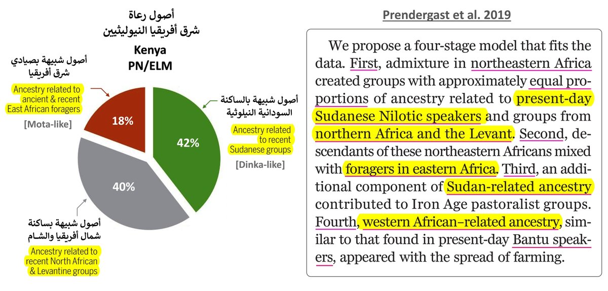 انتبهوا محاولات سرقة الأصول الوراثية لاختلاق هويات وهمية ادعى🤡كمتاوي بأن المقصود بالأصول الشامية بأطروحة Simões 2023 هو "الحوض الوراثي لرعاة شمال شرق أفريقيا" حسب Prendergast 2019 بينها هذا هو تعريف دراسة Prendergast لهذه الأصول👇 👈أصول نيلوتية [Dinka-like] بحوالي النصف!