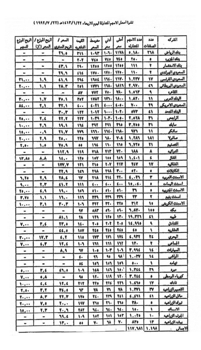 كان إداء #تاسي بنهاية العام 1994م على النحو التالي: