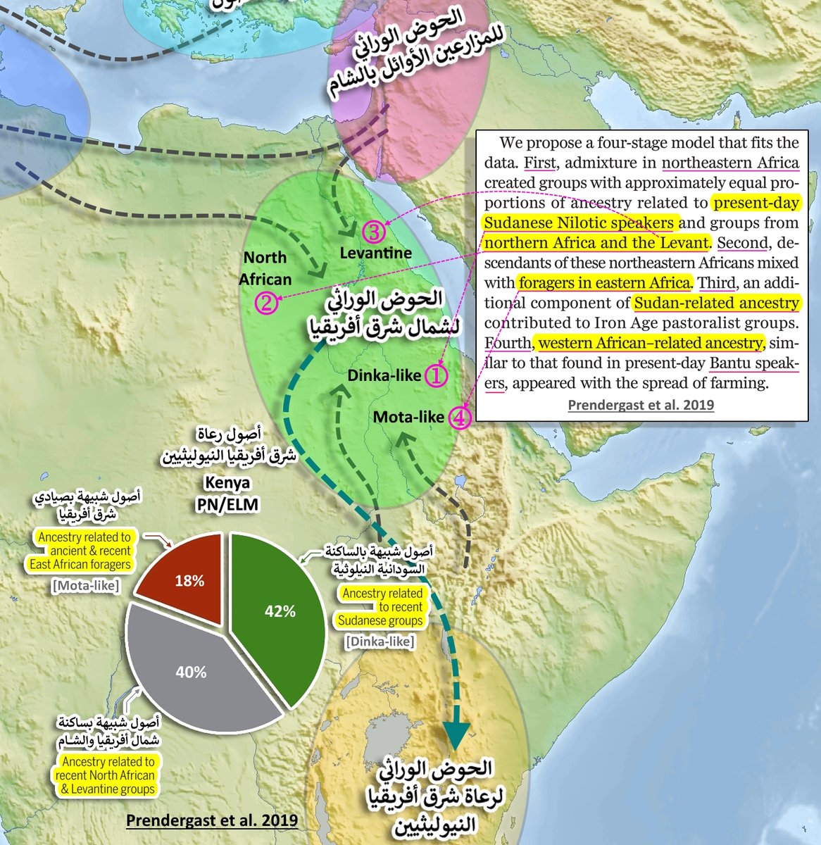 ما تقوله دراسة Prendergast 2019 حول خلائط شمال شرق أفريقيا
