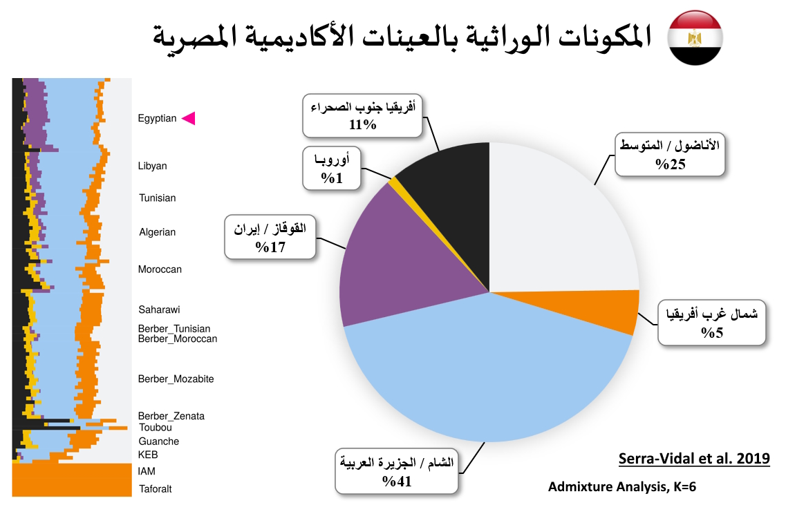 تشير دراسة [Serra-Vidal 2019] إلى أن مكون شمال أفريقيا الباليوليثي [Taforalt-like] أصبحت نسبته تتراوح بين %18.1 بالعينات الصحراوية و %5.2 بالعينات المصرية فقط !