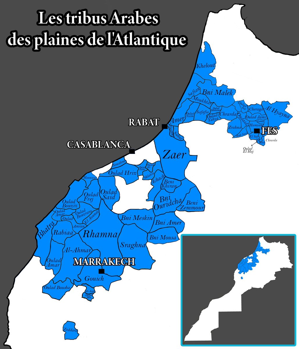 Mais Arabes uniquement selon le principe d'arabité, qui est très inclusif, mais comme on parle de tribus (et donc d'origines) voici une carte déjà plus proche de la réalité.