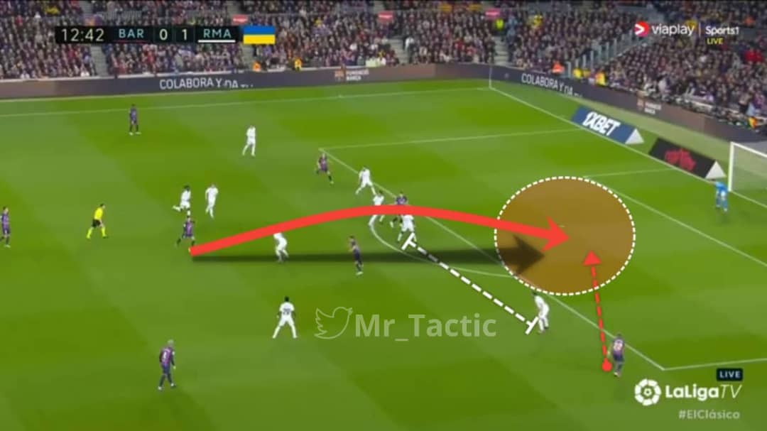 - أي فريق هجومي يبحث عن مساحات أكبر ، #برشلونة بالكرة يحاول زيادة المساحات أفقيا من خلال الجناح و الظهير ، عموديا من خلال المهاجم و لاعبي الوسط الهجوميين