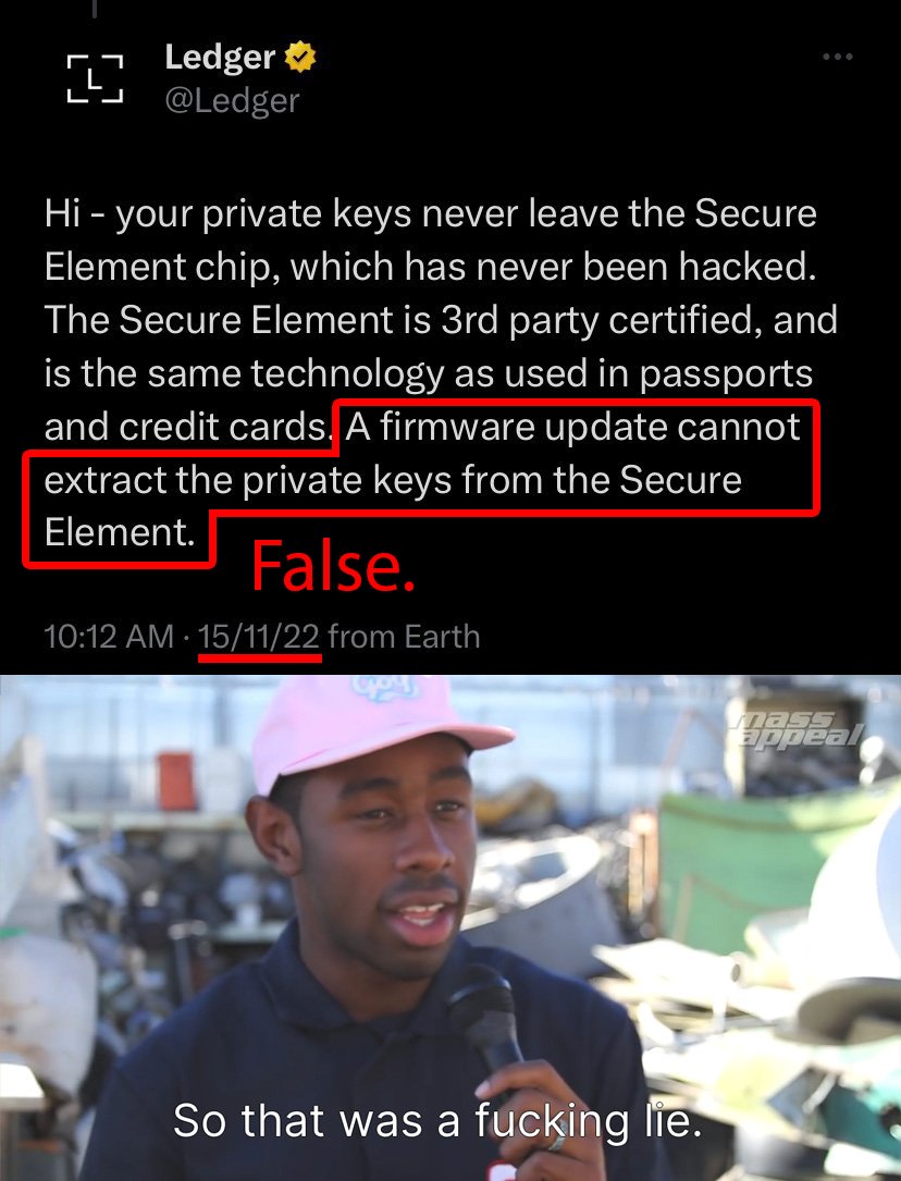 This just came to light as Ledger unveiled its #LedgerRecover service. This "recovery service" is actually not the core issue. It's what it tells us about the hardware wallet's capabilities.