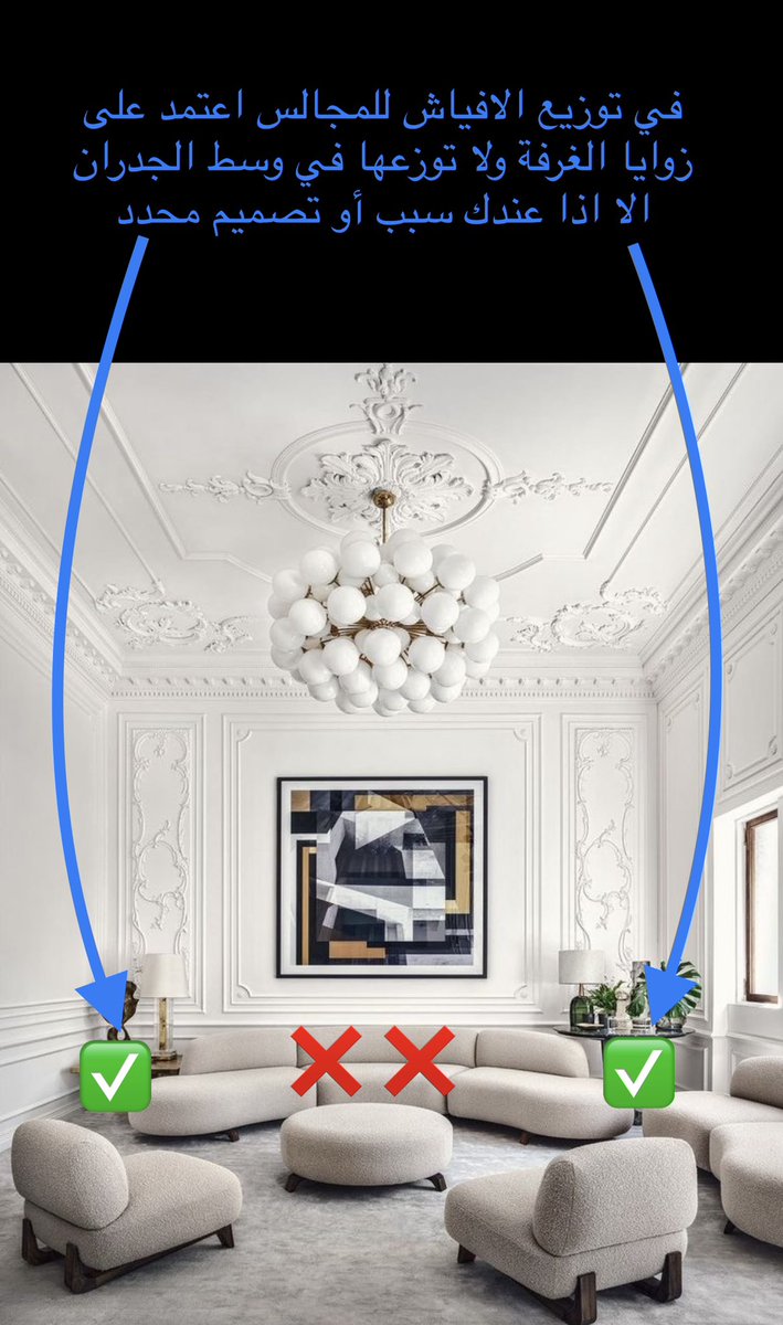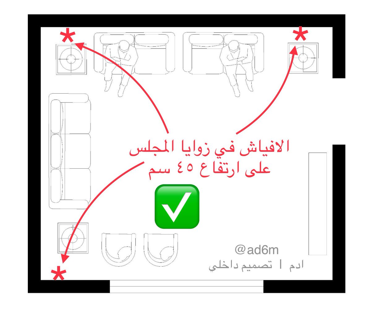 توزيع أفياش الكهرباء في المجالس في الجدران بشكل عشوائي ويعتبر من أكثر الاخطاء انتشاراً والصحيح توزيعها على زوايا المجلس