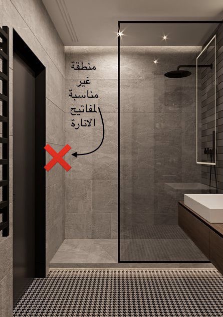 مفاتيح الإنارة في منطقة الاستحمام بسبب فتحة الباب