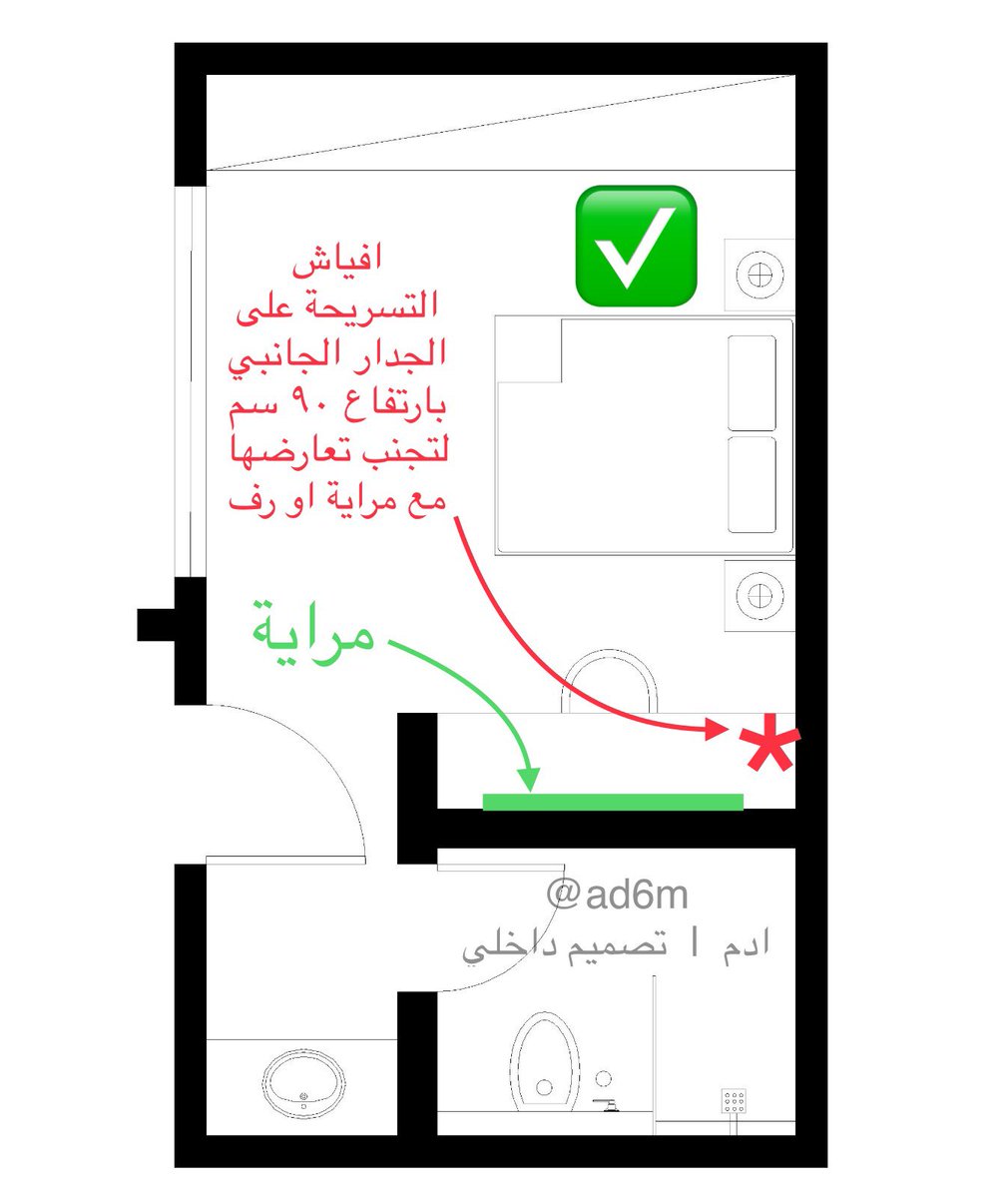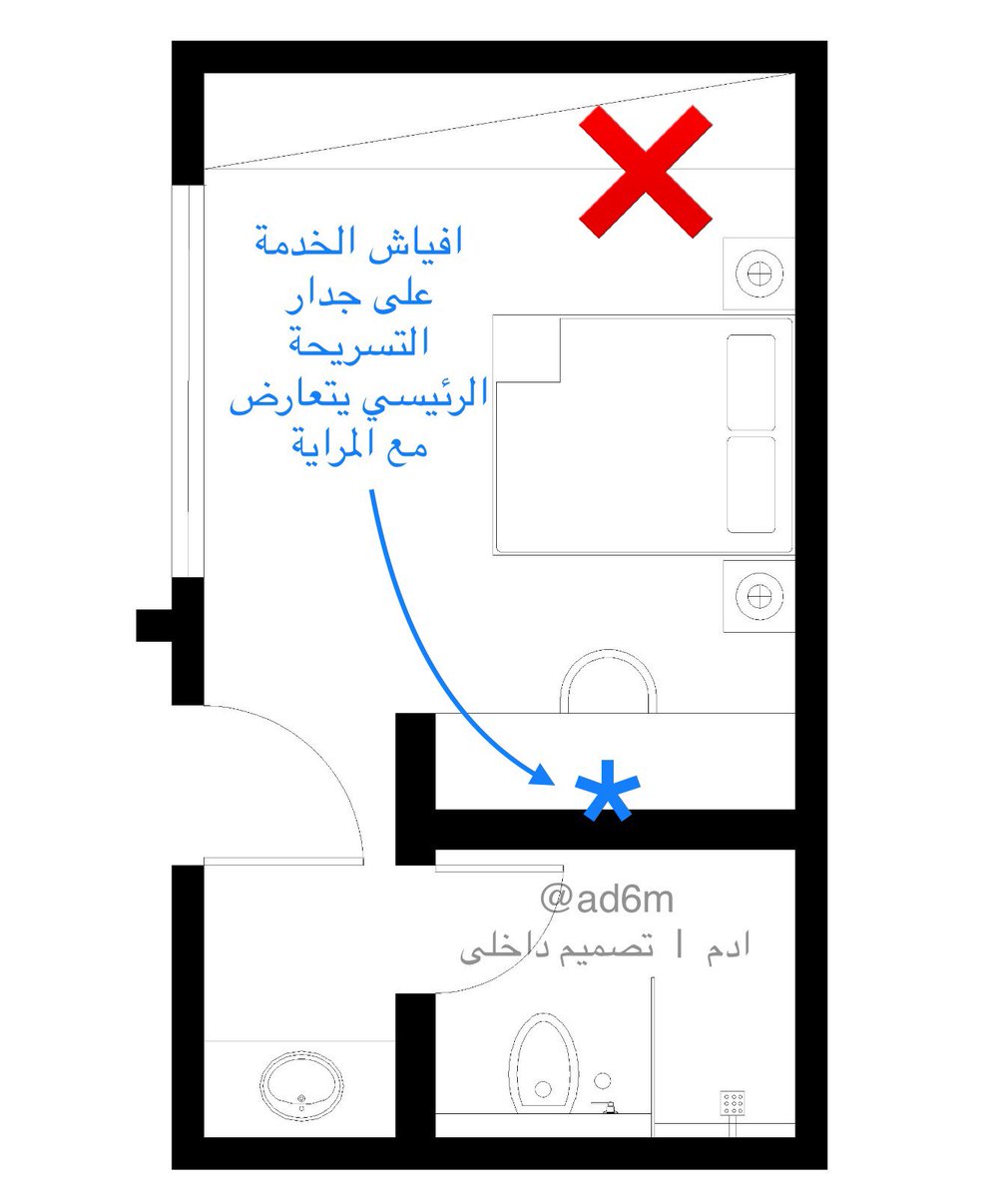 تأسيس افياش لخدمة التسريحة في الجدار المقابل للجالس والصحيح التأسيس على الجدار الجانبي لتفادي تعارض الافياش مع المراية