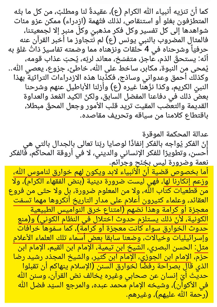 ١- الكذب في نسبة إنكار جميع المعاجز للعلماء المذكورين.