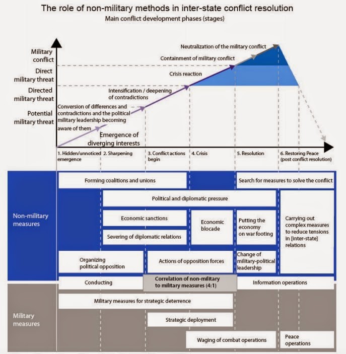 الهدف الرئيسي هو تحقيق النتائج الاستراتيجية والجيوسياسية المنشودة باستخدام مجموعة أدوات واسعة من الأساليب والوسائل غير العسكرية الدبلوماسية الصريحة والسرية، والضغط الاقتصادي، وكسب تعاطف السكان المحليين، إلخ...