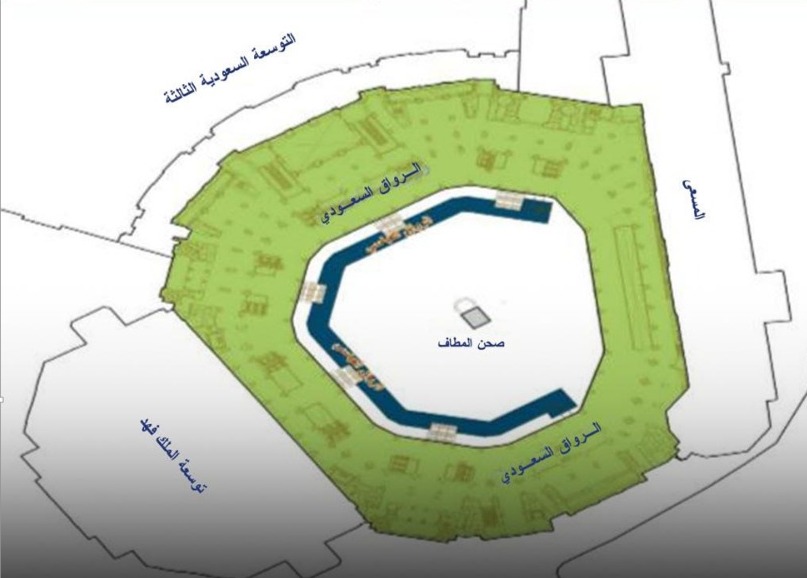 #الرواق_السعودي يتكون من 4 أدوار وبطاقة استيعابية تصل إلى 287000 مصل و 107 آلاف طائف في الساعة