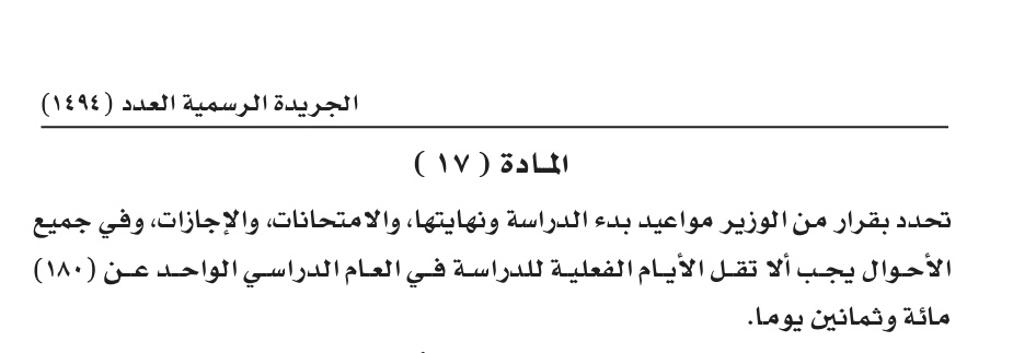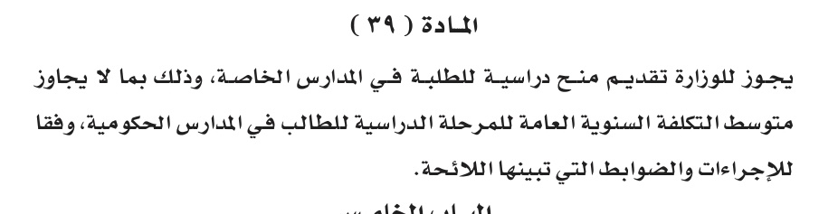 ٣/ بشكل العام القانون أطّر العملية التعليمية، بإطار قانوني واضح، ووضع المحددات الأساسية، والقواعد التي يرجع لها في العملية التعليمية، ووضح المسافات بين مختلف أجزاء المنظومة التعليمية، الوزارة، الدولة، المجتمع، الطلبة، المعلمين، المنشآت وغيرها.