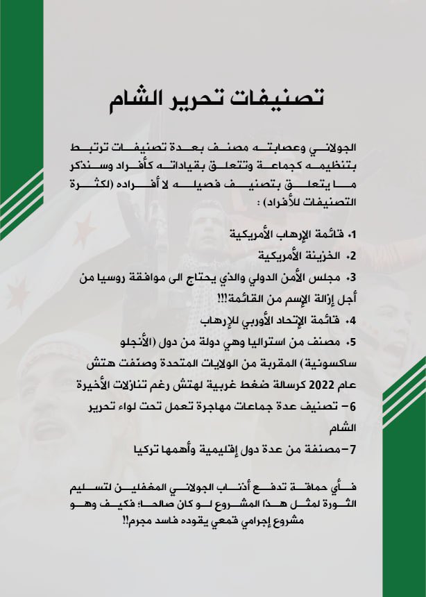 مع فاتورة دماء وأموال وتهجير شابه النظام بفعلها مع الثوار، فالوقوف ضد مشروع الجولاني اليوم هو واجب الثورة بأكملها وليس فصيلا أو جماعة بعينها.. لماذا ذلك ؟!