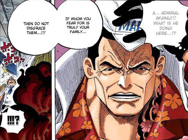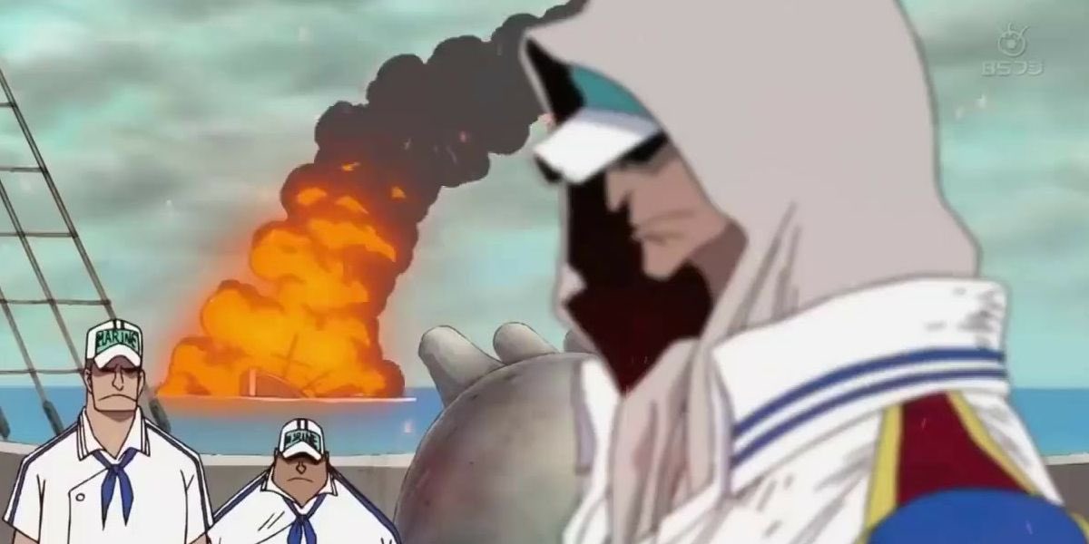 فأكثر من طبق تلك العدالة في بحرية ون بيس هو قائد اسطولها اكاينو، وهي العدالة التي يطبقها اشهر قادات الجيوش في انحاء العالم "فرِّق تَسُد"، سفينة اللاجئين من العامة الابرياء دمرت بحجة "إزالة الشر من جذوره" لا يهم كم روح من الابرياء زهقت ان كان الاخرين من الابرياء سيعيشون في سلام..!