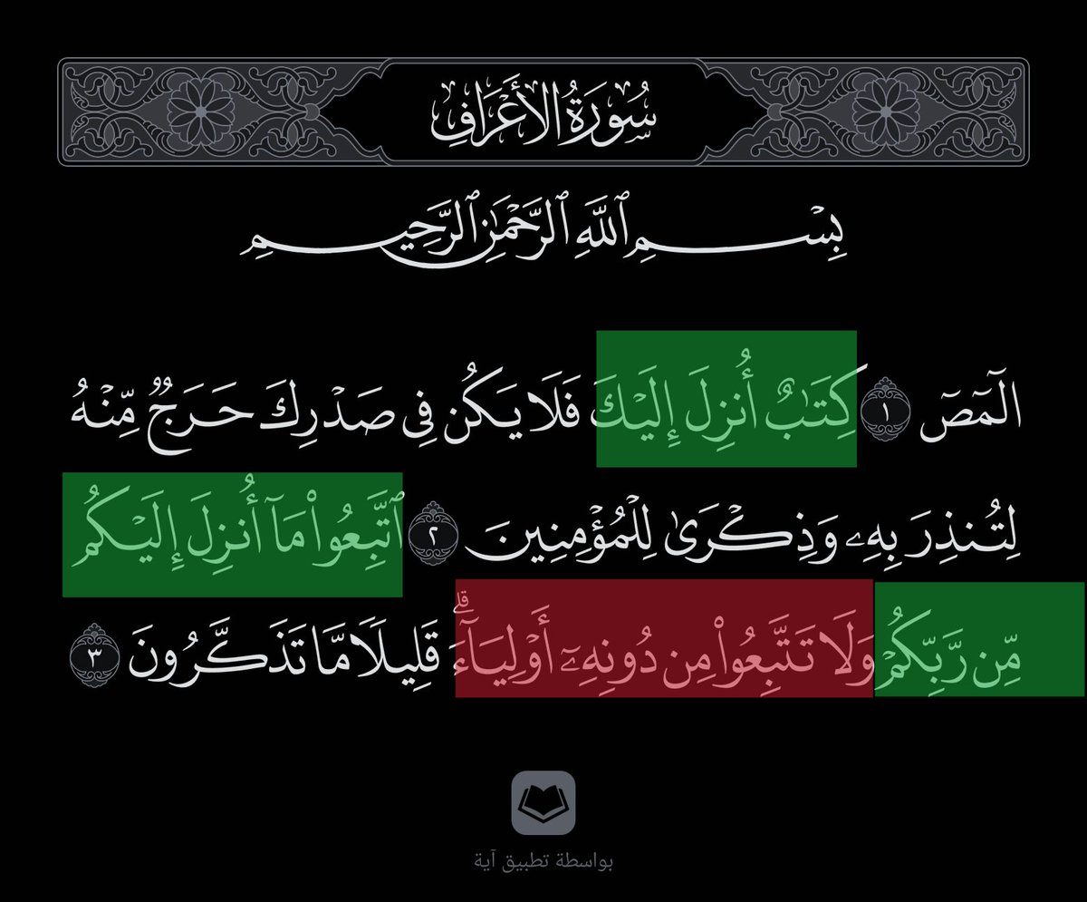 ٢-أيضاً بينتهم سورة الأعراف الآيات ١-٣ انهم الأولياء الذين يريدونك ان تتبعهم وتتبع كتبهم من دون كتاب رب العالمين.