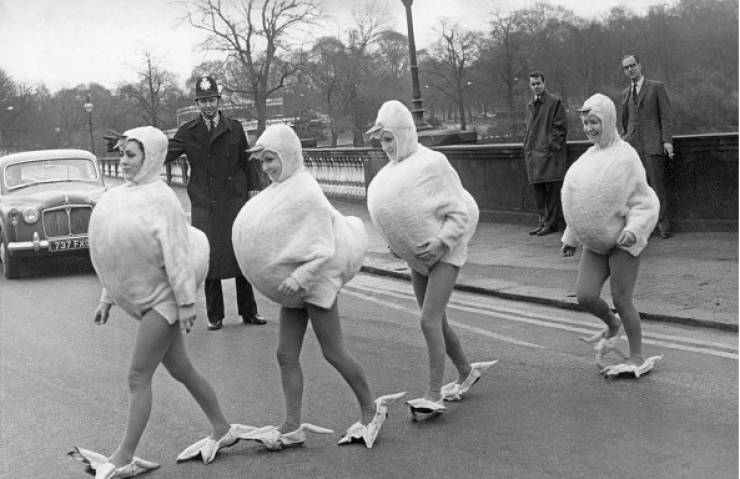 - Un policía detiene el tráfico para permitir que 4 polluelos crucen un puente en Londres, 1966.