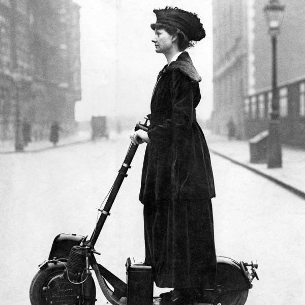 - Mujer montando un autoped, el primer scooter, 1916.