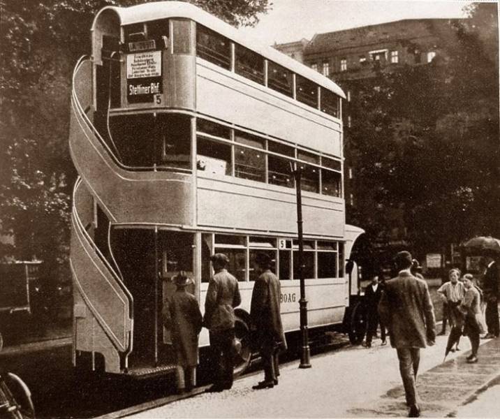 - Personas utilizando autobuses de tres pisos en Berlín, Alemania, 1926.