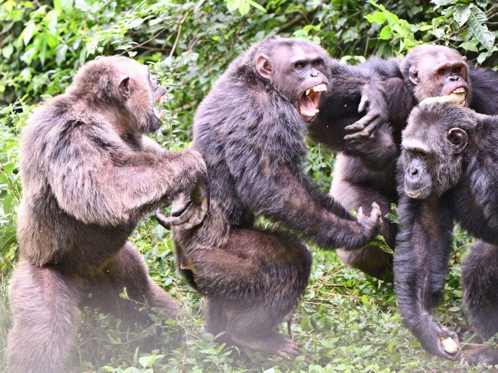 சிம்பன்சிகளை போல தனது குழுக்குள் தலைவர் போட்டிக்கு சண்டை, தனது குழுக்குள்ளேயே உணவுக்காக சண்டை என்று இருக்காது.