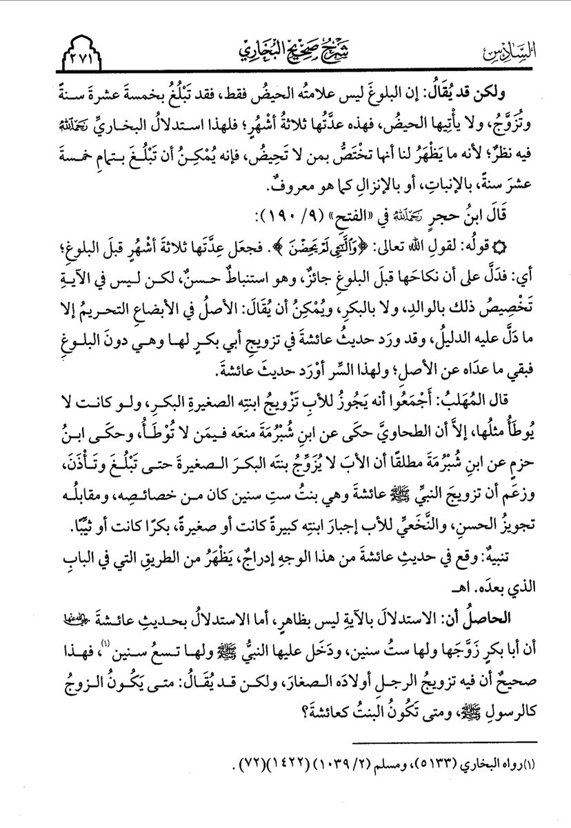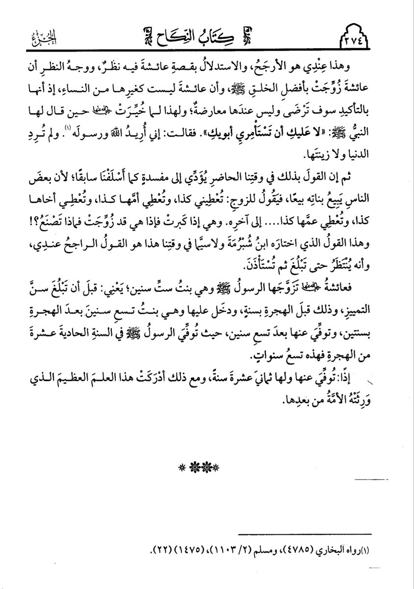 وإنما يراعون مصلحة أنفسهم فقط فمنع هذا عندي في الوقت الحاضر متعين ولكل وقت حكمه ولا مانع من أن نمنع الناس من تزويج النساء اللاتي دون البلوغ مطلقا فها هو عمر وذكر الشواهد وبين أن الاجماع غير صحيح وبعدها قال ثم إن القول بذلك في وقتنا الحاضر يؤدي إلى مفسدة كما أسلفنا سابقا لأن بعض =