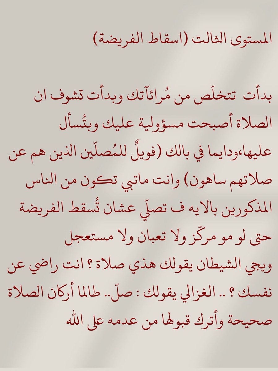 وتحت التغريدة ٧ مستويات للصلاة، وصفهم الامام الغزالي..