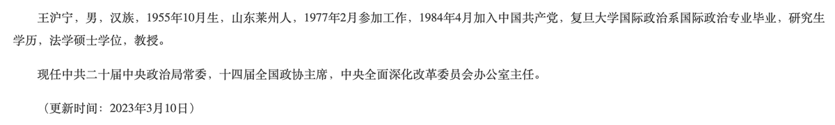 前面我谈到了支持这一假设的一个原因,即中共中央层面的官方简历包含哪些职务有特定的要求,没有特殊原因不会改变规则。