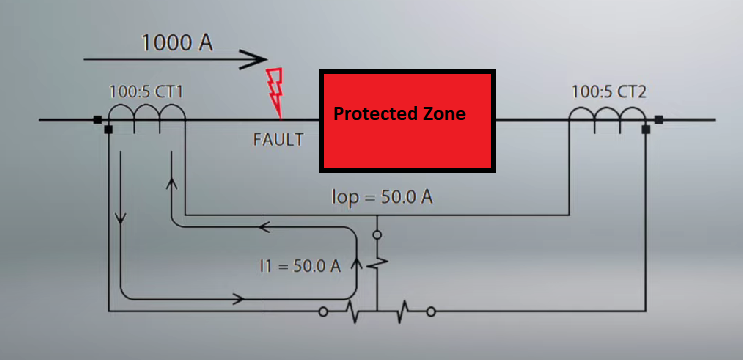 ولا يجوز القول بان نضبط O/C settings اعلى من 1A او 10A لتفادي الفصل الخاطئ لانها قيم عالية جدا تفقد حساسية ال O/C coil بتيار القصر في داخل zone وغير مقبول ولذلك تم تحسين هذا النموذج النظري وتعديله لكي يتم حل مشاكل CT mismatch من خلال طريقتين