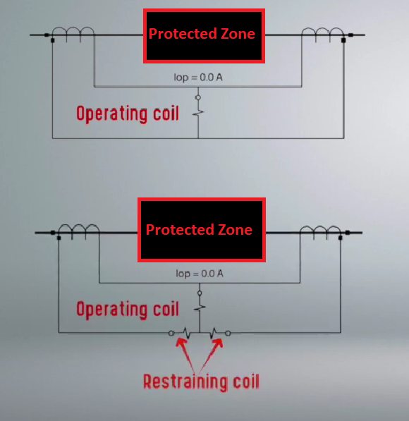 اما اذا كانت محصلة تيار biased الذي يمر بالـ Restrain coil اعلى من الـ operational coil لن يصدر الـ relay اشارة الفصل Trip
