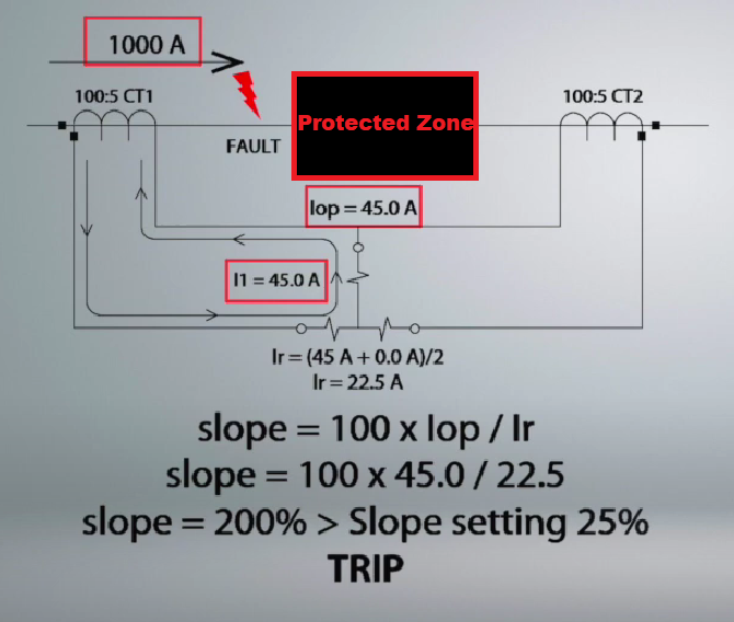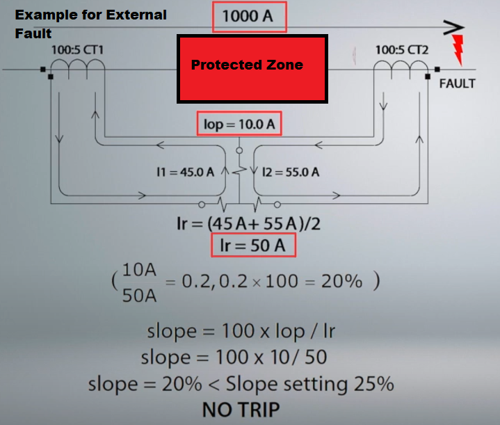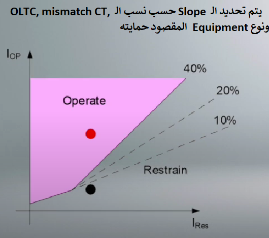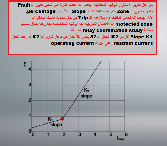 وكل هذه التعديلات على الـ slope الغرض منه محاولة للتأكد من ان الـحماية التفاضلية لاتعطي أمر الاخلاء بسبب عطل خارجي.