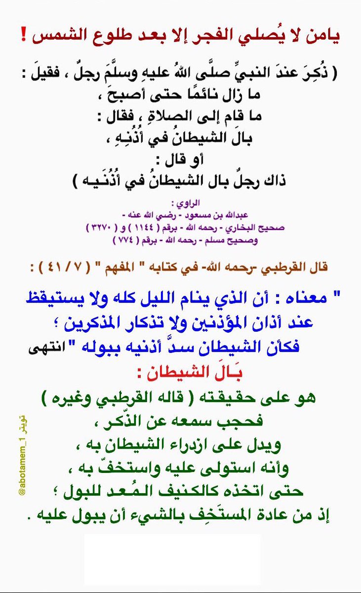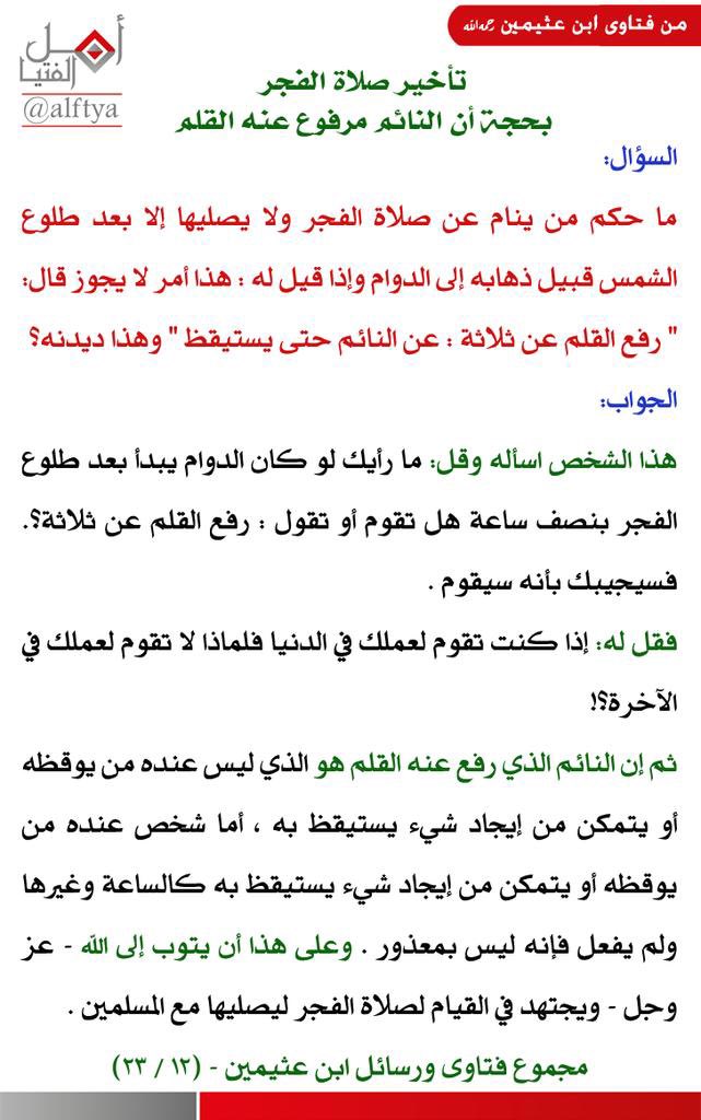 وللعلم الذي ينام عن صلاة الفجر له عذر واحد