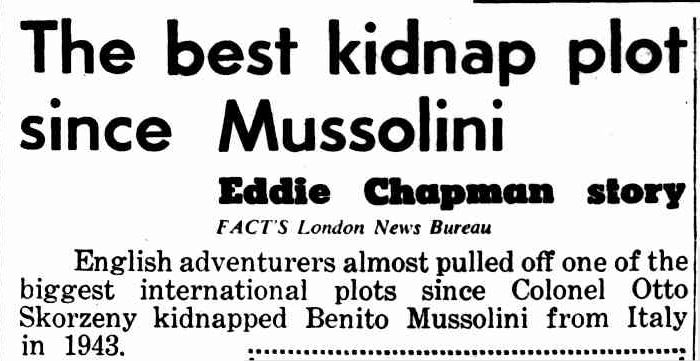 محمد الخامس، وفي حال نجاح الخطة كانوا سيحصلون على مقابل مادي قدره 250 ألف جنيه استرليني. وكانت العصابة تتكون من إدي تشابمان، وهو الذي عمل جاسوسا إنجليزيا خلال الحرب العالمية الثانية، و بيلي هيل المعروف بسجله الإجرامي في مجال التهريب والاختطاف، وانتقلت العصابة إلى مدينة طنجة على