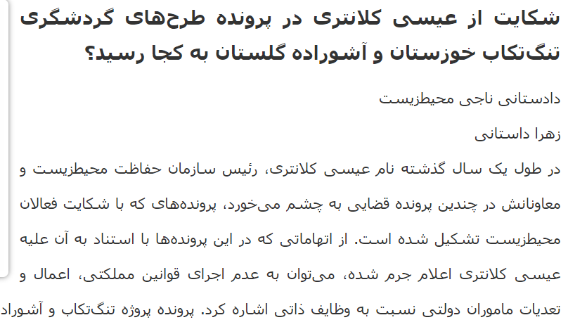 روزنامه ابتکار: شکایت از عیسی کلانتری در پرونده طرحهای گردشگری تنگتکاب خوزستان و آشوراده گلستان به کجا رسید؟