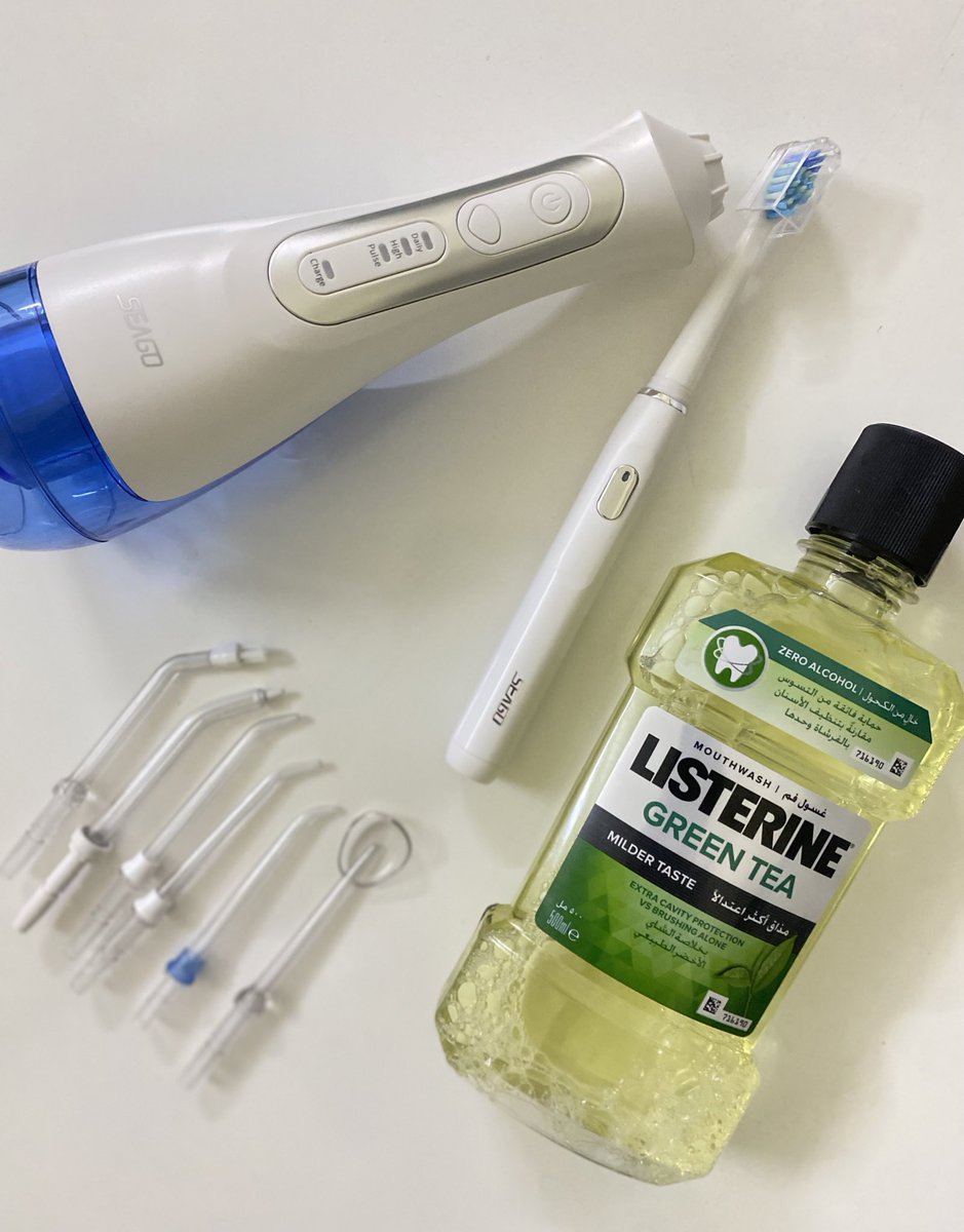 بداية ما ركبت تقويم الأسنان كانت لثتي تعبانة وتنزف بكل مرة أشد نصحني الدكتور بالخيط المائي مع غسول للفم يخفف النزيف ويزيل بقايا الأكل بين الأسنان وينظّف الأماكن اللي يصعب الوصول لها بالفرشاة وينظف اللسان ويعطي نفسا مُنعش هنويشيل الروائح الكريهة اللي ممكن تطلع بسب التقويم والشد.