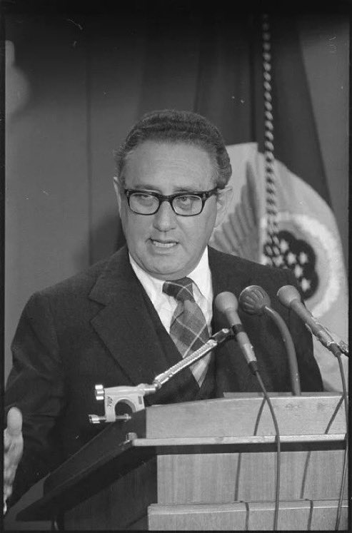 - يبلغ مستشار الأمن القومي السابق ووزير الخارجية هنري كيسنجر اليوم 100 عام. يشمل إرثه ، على سبيل المثال لا الحصر ، إطالة أمد الحرب على فيتنام وتسهيل عمليات الإبادة الجماعية في تيمور الشرقية وكمبوديا وبنغلاديش ودعم الانقلابات وفرق الموت في جميع أنحاء أمريكا اللاتينية.