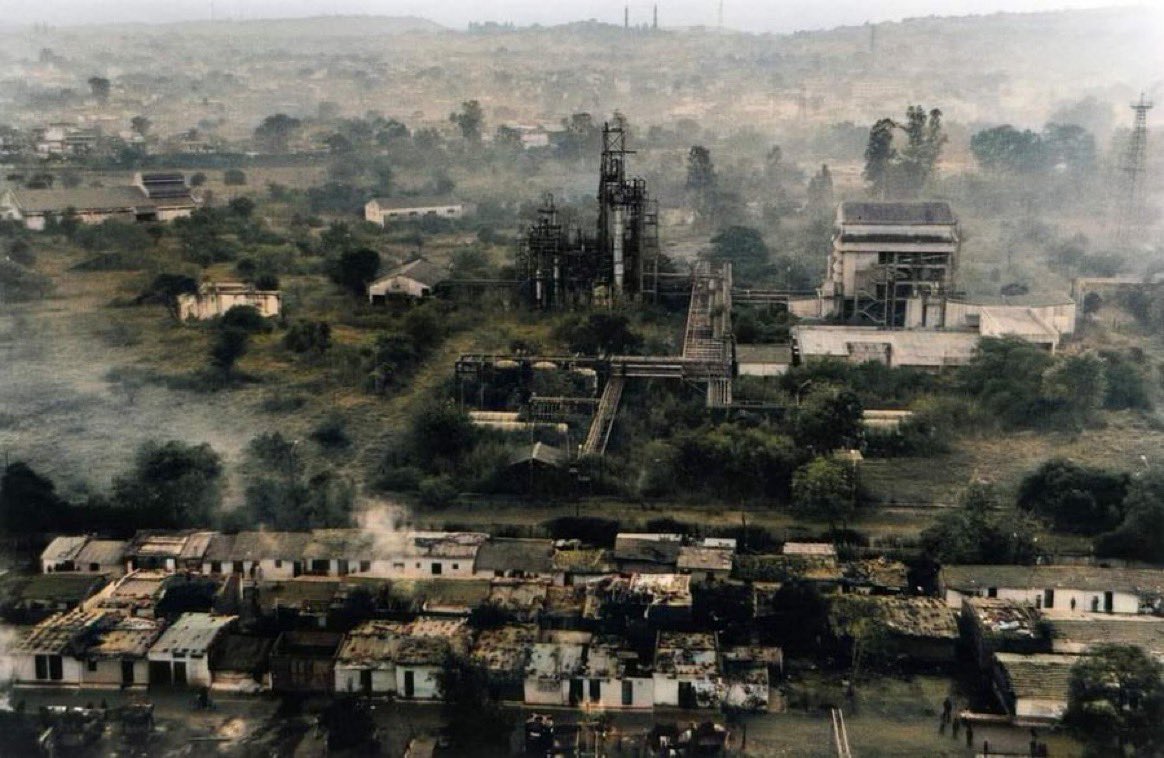 أحد أكثر الغازات السامة ينبعث من المصنع المملوك لشركة الكيميائيات الأمريكية العملاقة يونيون كاربايد (UCC) في عام 1984 في بوبال ، الهند.