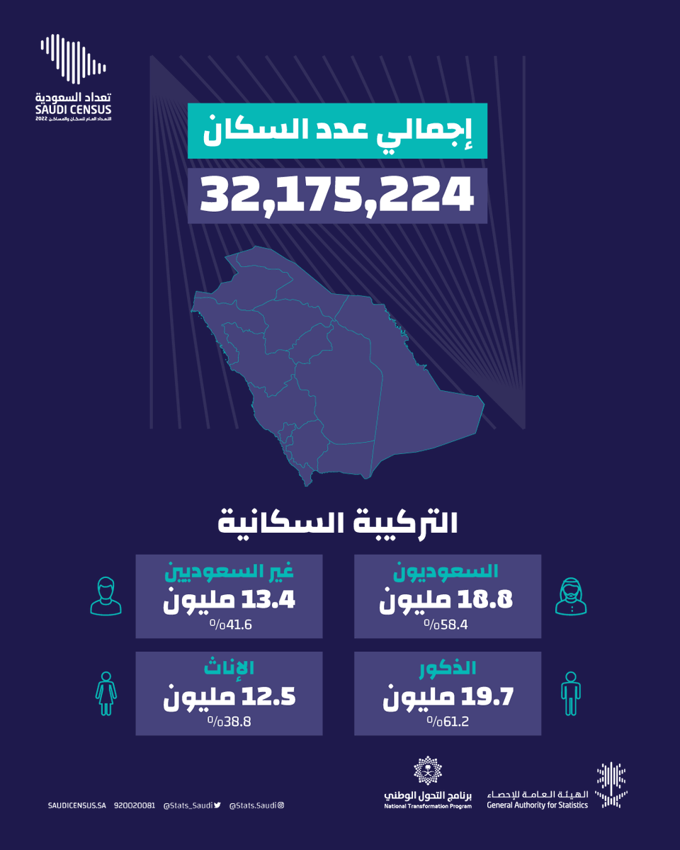 تقرير #تعداد_السعودية_2022 الذي اصدرته الهيئة العامة للإحصاء @stats_saudi يعزز مكانة المملكة العربية السعودية كدولة قيادية إقليمياً وعالمياً.