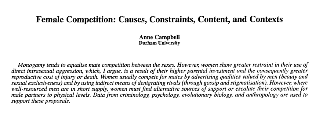 ويقول أحد الباحثين "ربما تم تضليلنا لأننا قاومنا فكرة عدوانية الإناث باعتبارها فكرة تتعارض مع فهمنا للأنوثة".