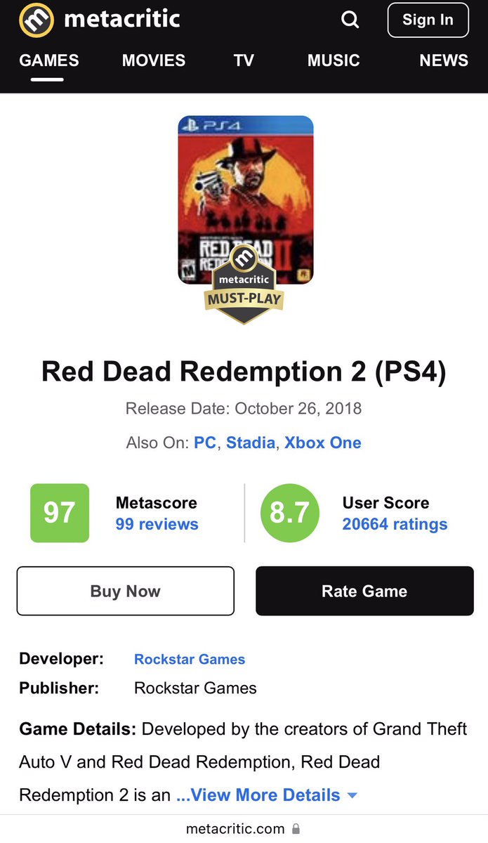 —— ختاماً … لعبة Red Dead Redemption 2 من افضل العاب الاكشن والعالم المفتوح واهيا الافضل على مرور الاجيال والافضل بالتاريخ من وجهة نظري واعطيها 10/10 (100%)