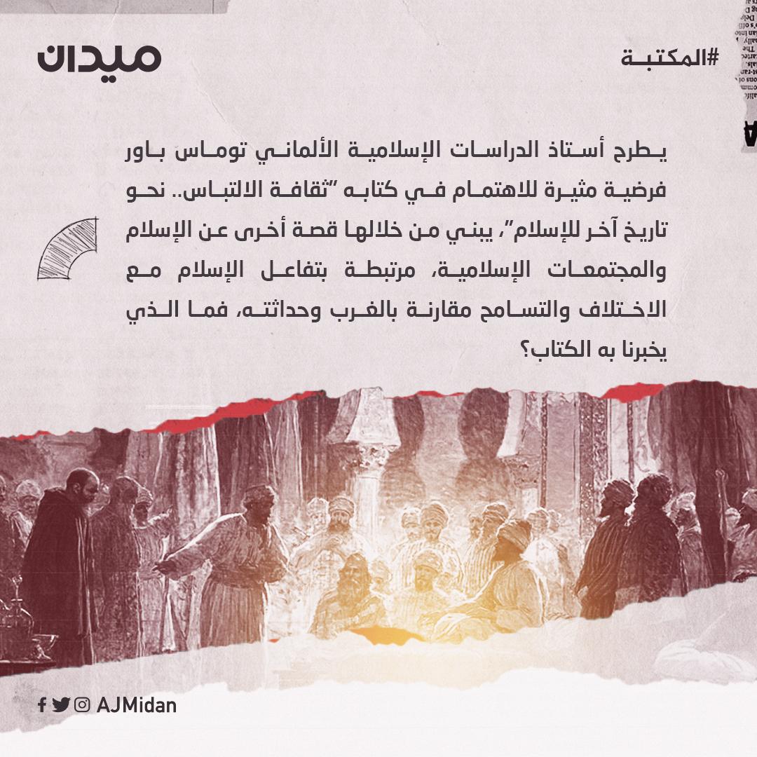 يطرح أستاذ الدراسات الإسلامية الألماني توماس باور فرضية مثيرة للاهتمام بكتابه "ثقافة الالتباس.. نحو تاريخ آخر للإسلام"، يبني من خلالها قصة أخرى عن الإسلام والمجتمعات الإسلامية، مرتبطة بتفاعل الإسلام مع الاختلاف والتسامح مقارنة بالغرب وحداثته، فما الذي يخبرنا به؟