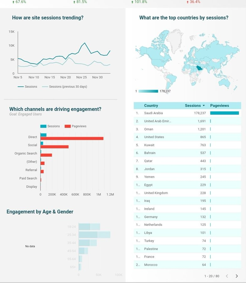 على سبيل المثال هذا تقرير مستخرج من Google analytics عن طريق Google Data studio