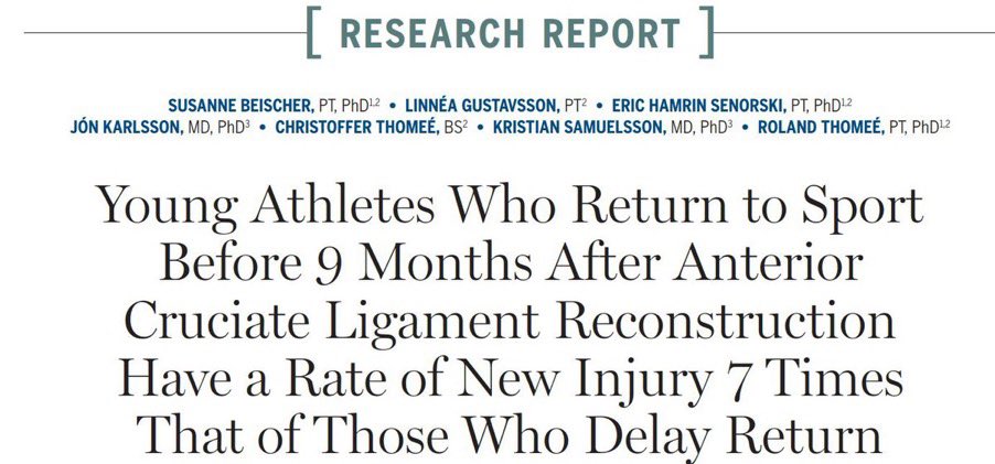 الأبحاث العلمية الحديثة تشير أن اللاعبين الذين يعودون للملاعب قبل 9 أشهر معرضين بمقدار 7 أضعاف بمعدل تكرار الإصابة من أولئك الذين يتأخرون في العودة ‼️