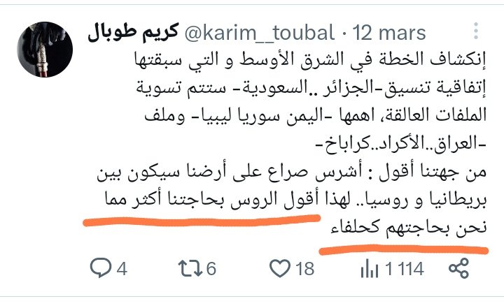 ف"روسيا و الصين" بحاجة إلى #الجزائر كحليف قوي صامد لتهيئة المنطقة لمشاريعهم بالتصدي للفوضى الممنهجة القادمة، و لكي نعيد ترتيب دول الجوار بما يخدم مشاريعنا المشتركة.. فهم بحاجتنا أكثر مما نحن بحاجتهم.