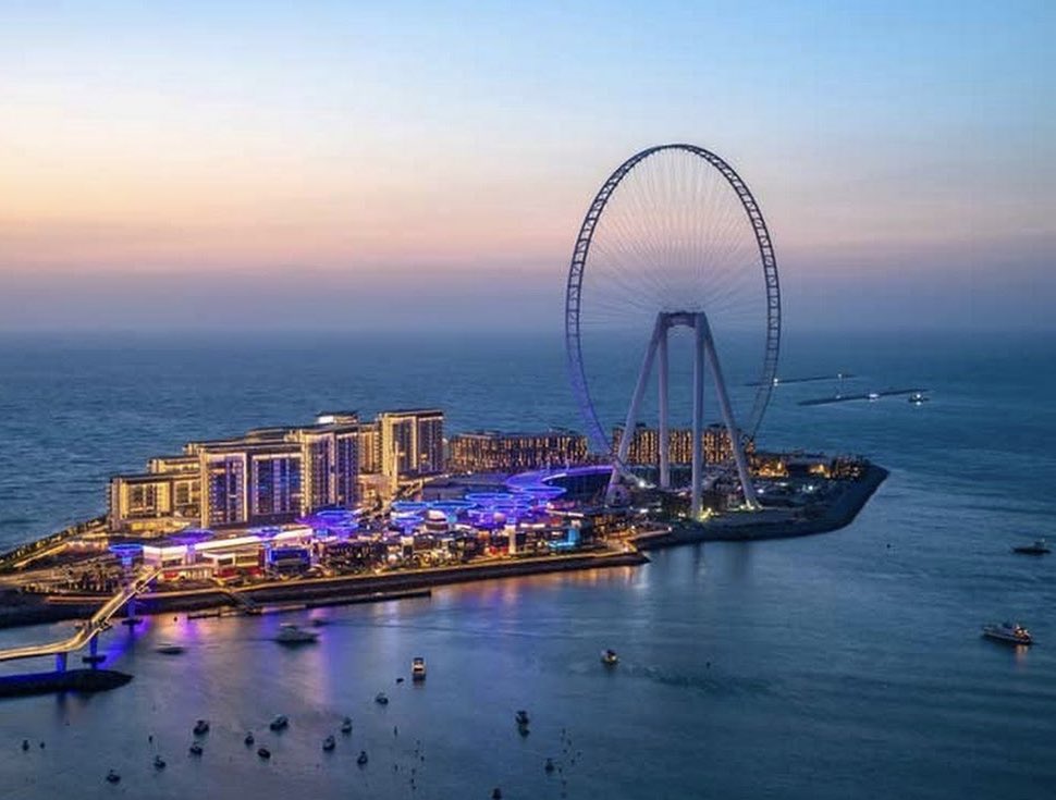 . جزيرة فخمة فيها اكبر عجلة اسمها عين دبي وفيها كوفي معلق هنا موقعم للحجز